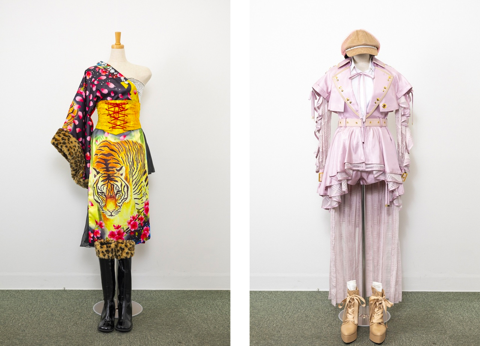 「初めてのことだらけの衣装でした!おかげさまで2020年にライブと連動した投票企画として行った『NMB48衣装総選挙』では1位をとらせていただき、衣装スタッフとして冥利に尽きますね。本当にありがたいです!衣装は全メンバー共通ですが、襟元に付いているビジューはフロントメンバーから装飾を多めに施しています。お袖は右腕だけで、左側は大胆に腕を出して艶っぽく!和風衣装はパンチを効かせて総柄プリントで派手に!下に履くスカートはシンプルな黒革をプリーツ加工して、48グループらしい制服感を出しました。NMBだけでなく他グループさんにもお貸し出しさせていただいたり、『ほんと何回使っていただいたんだろう?』ってぐらい、たくさんのメンバーに着ていただいてる衣装です」