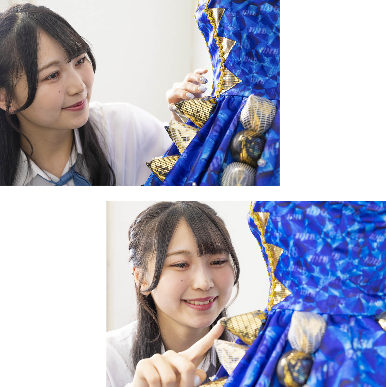 松永「そうですね。NMBメンバーだからこそ、こういうユニークで派手な衣装の案が浮かびますね」