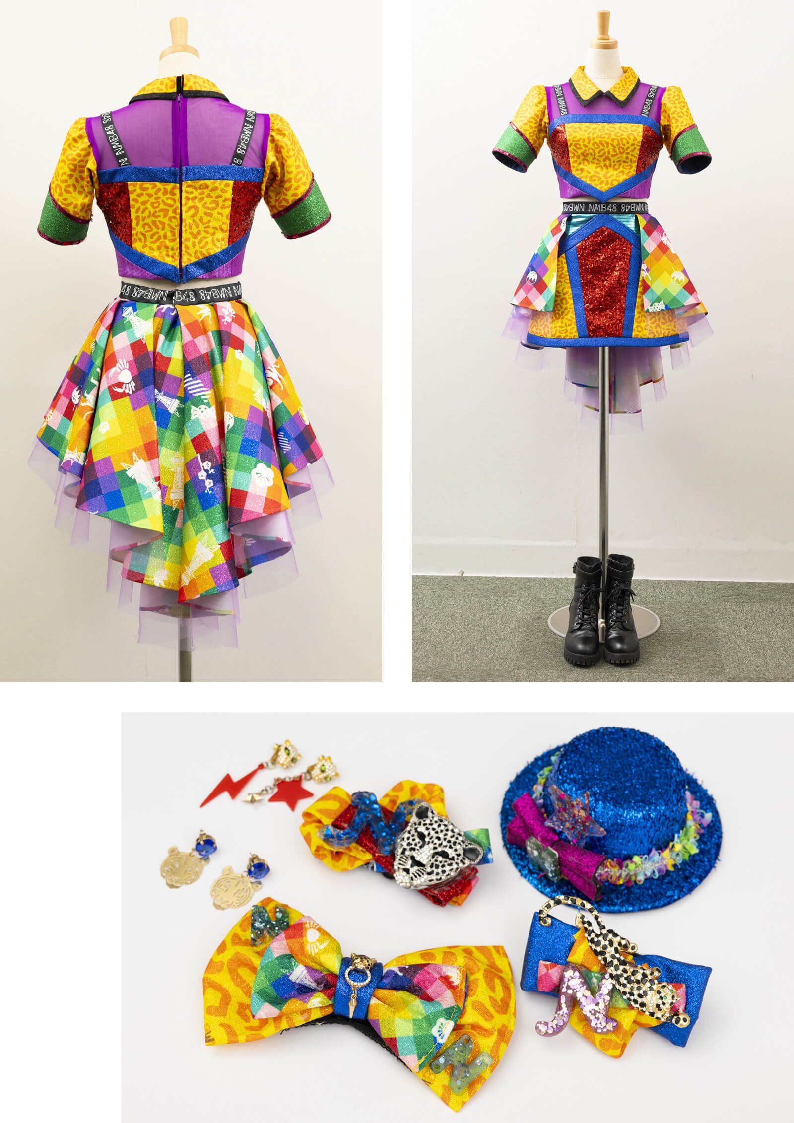 松永「そうそう、めちゃくちゃ急ぎました(笑)。ほかには、裾に付いているチュールですかね。パフォーマンス中にしゃがんだりするとブーツに引っかかって、初日でチュールが破れてしまったので、スカートに点どめして大きく舞ってしまわないように改良しました」