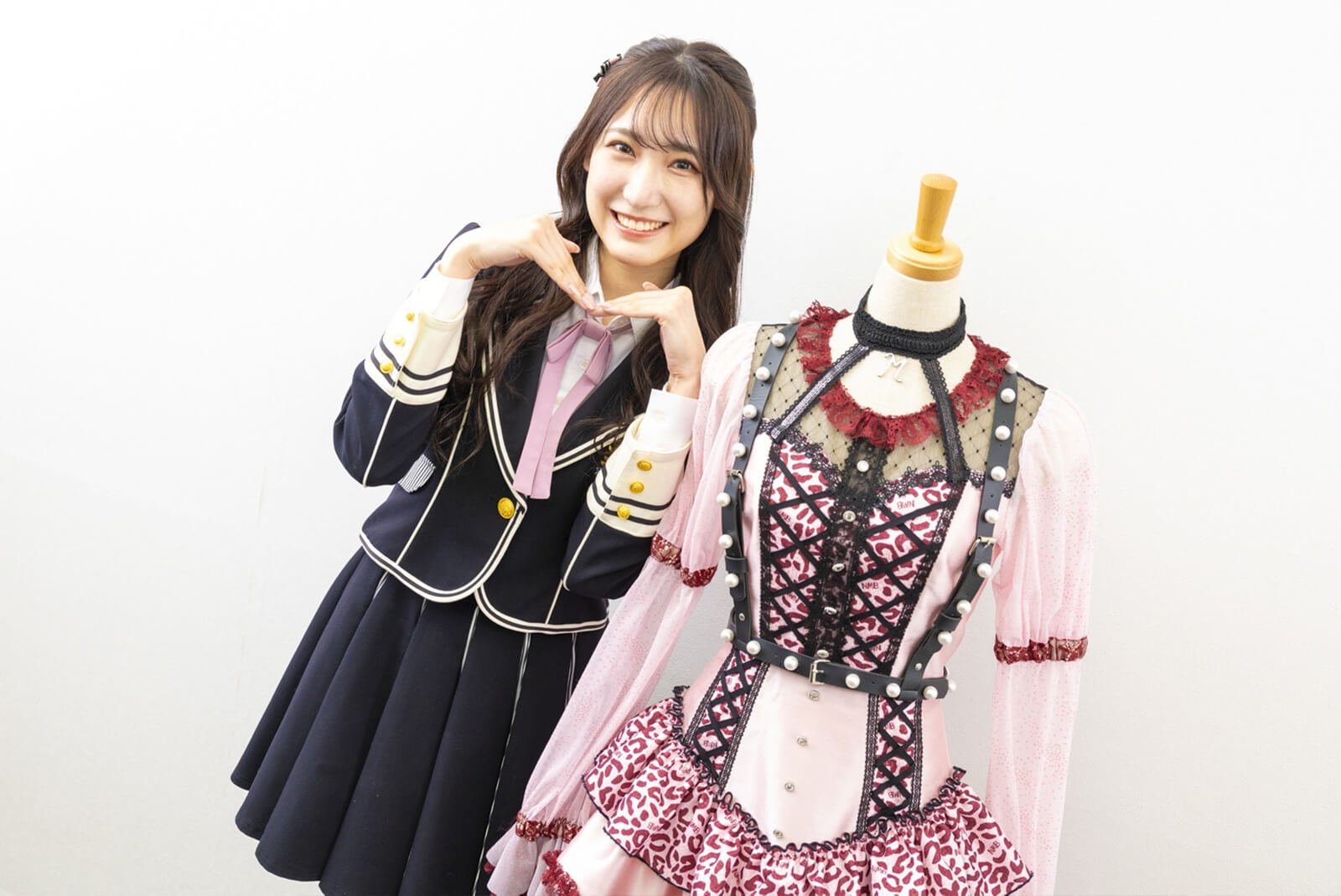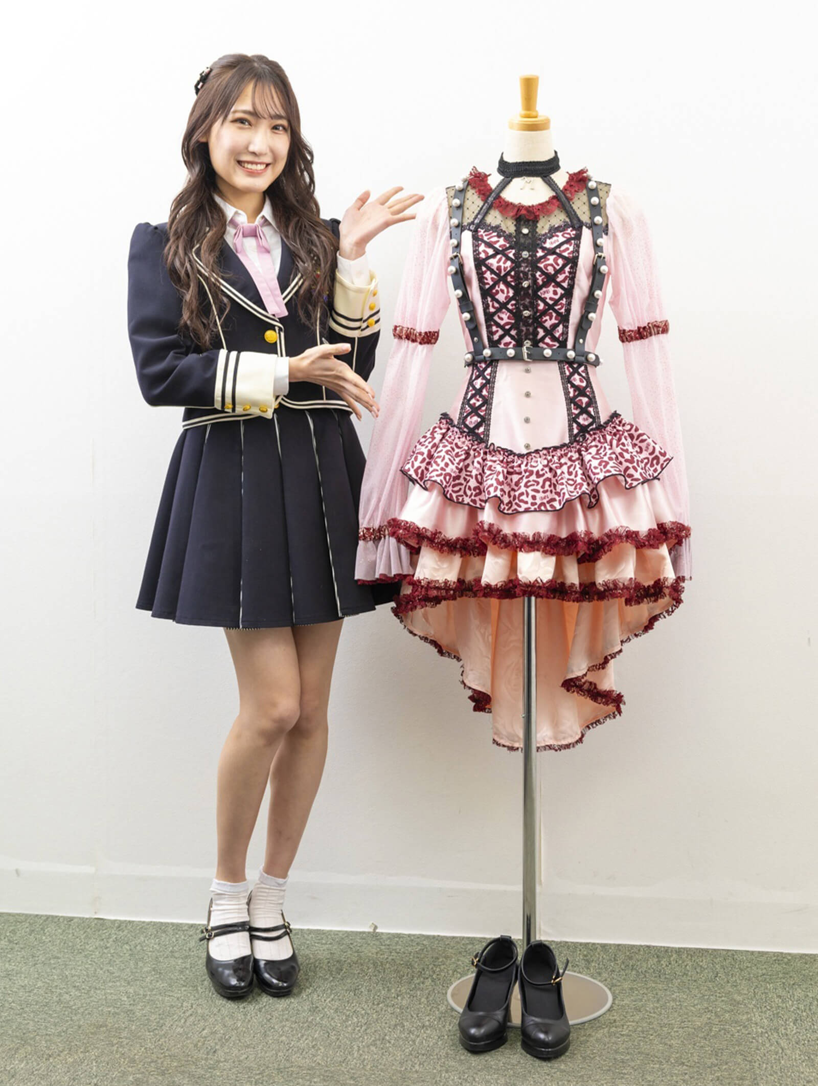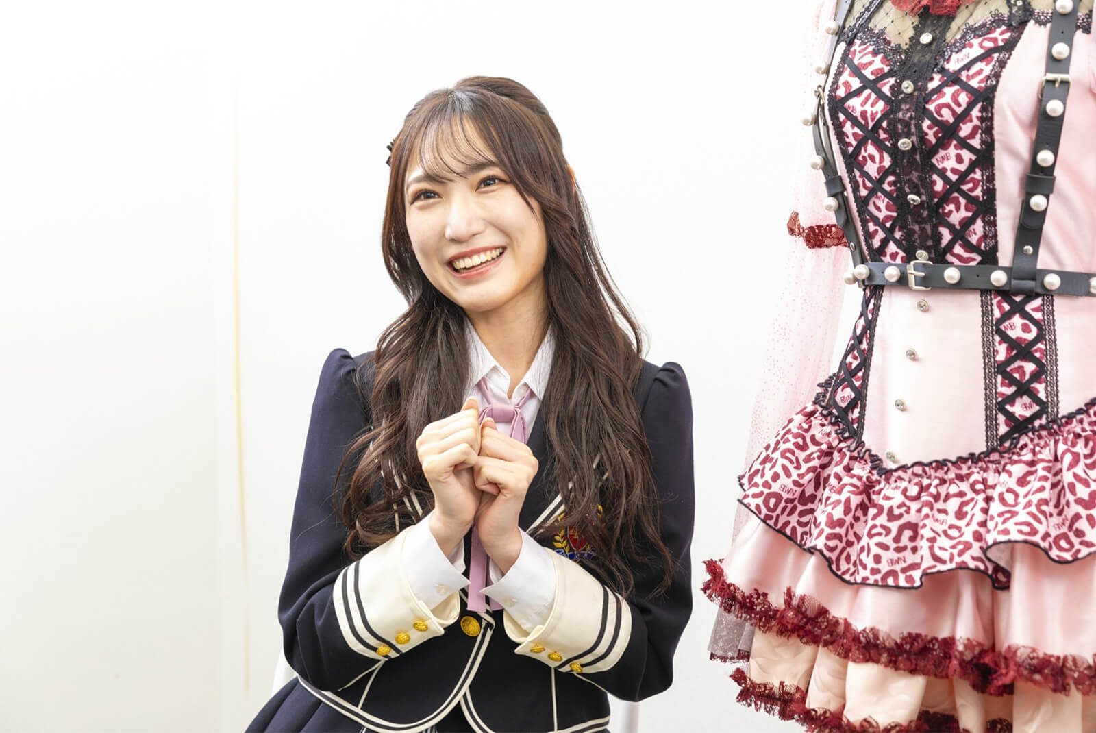 原「もちろん自分のお衣装が一番ですけど、ほかのチームのお衣装も着てみたいですよ~!(笑)。新しいポジションを覚えたり、練習は大変だけど、本番でお衣装を着られるのが楽しみだからいつも頑張れます。ほかのメンバーも『大変だけど、衣装を着たいから頑張れる』っていう人が多いんですよ。ファンのみなさんからの反響も大きいですし、お衣装の力って本当に偉大です。それに、またぎ(別のチームの公演に出ること)ができるようになったらチームNさんのお衣装も着られるので、頑張りたいです!」